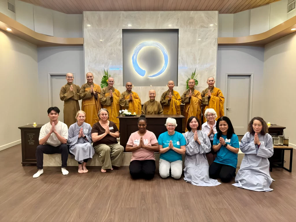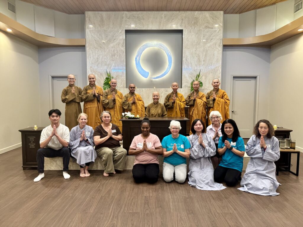 Awakened One Thich Dieu Thien opens wisdom mind through a Dharma talk, followed by lunch, Awakened Sangha sharing, and various Awakened Meditation applications.